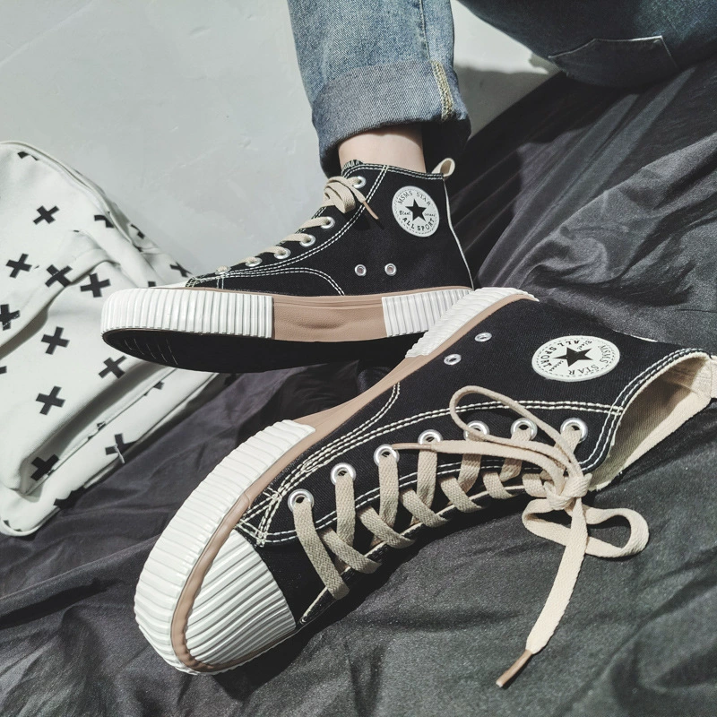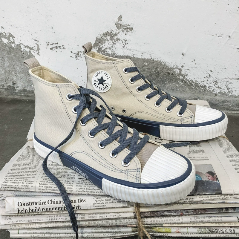 Spring New High-Top Canvas Shoes for Men Ins Hong Kong Style Trendy Breathable Couple Casual Sneakers Student Cloth Shoes